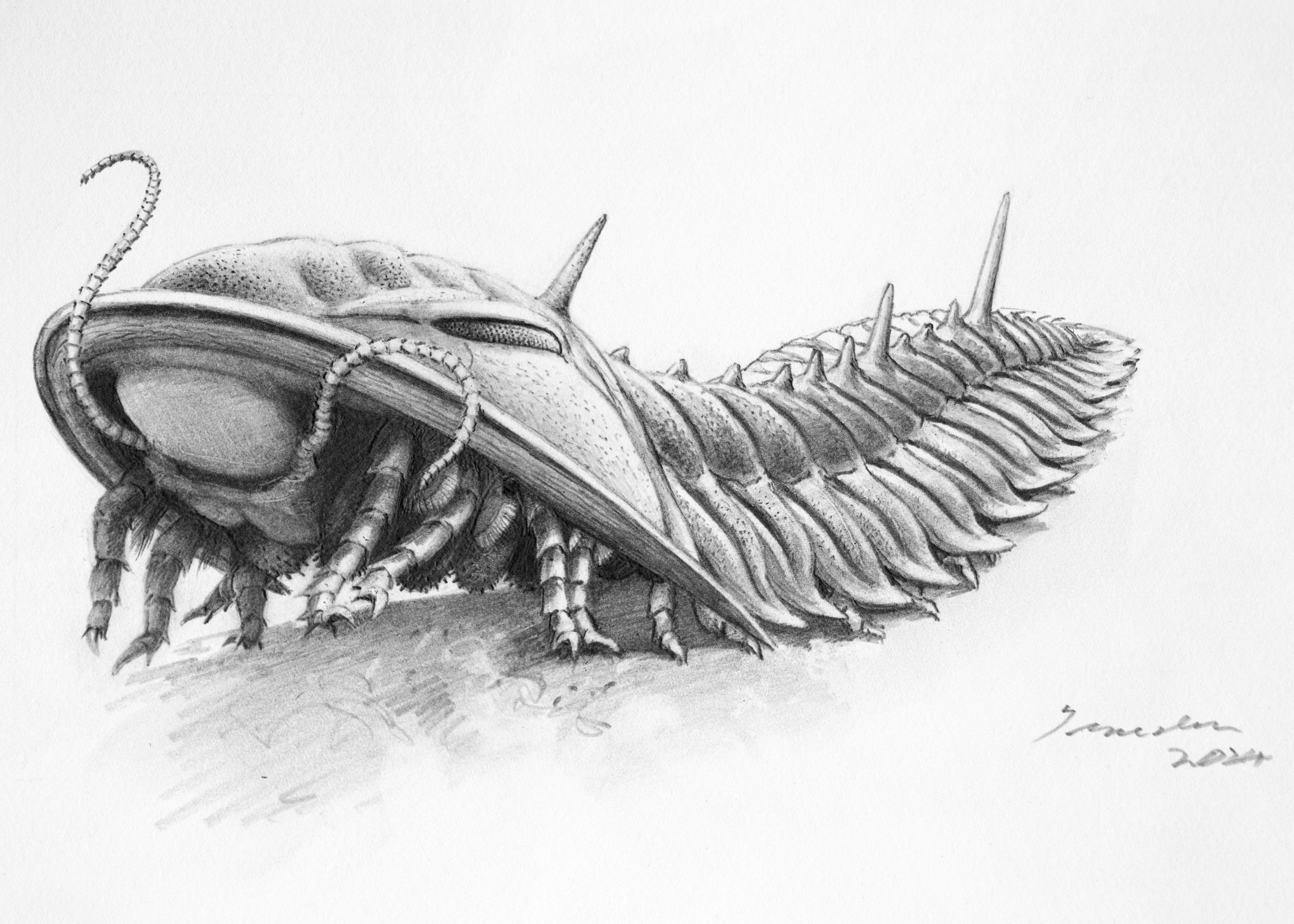 A heavily-armoured tank that roamed the sea floor eating whatever it wanted – the product of an evolutionary arms race that produced the Cambrian ‘explosion’ of animal life some 540–520 million years ago.