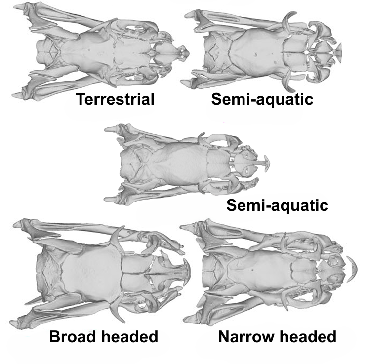 “A single species went into the water,” he said. “And it soon split into two lineages which started developing different head shapes; one wide and flat, one narrow and deep, which were alternative solutions for streamlining.